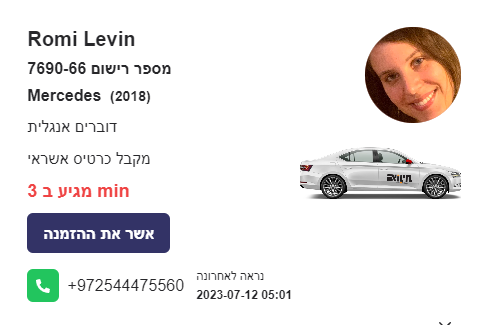 - יחד עם פרטי הנסיעה, הנהג מקבל את שם ומספר הטלפון הנוסע לתיאום האיסוף